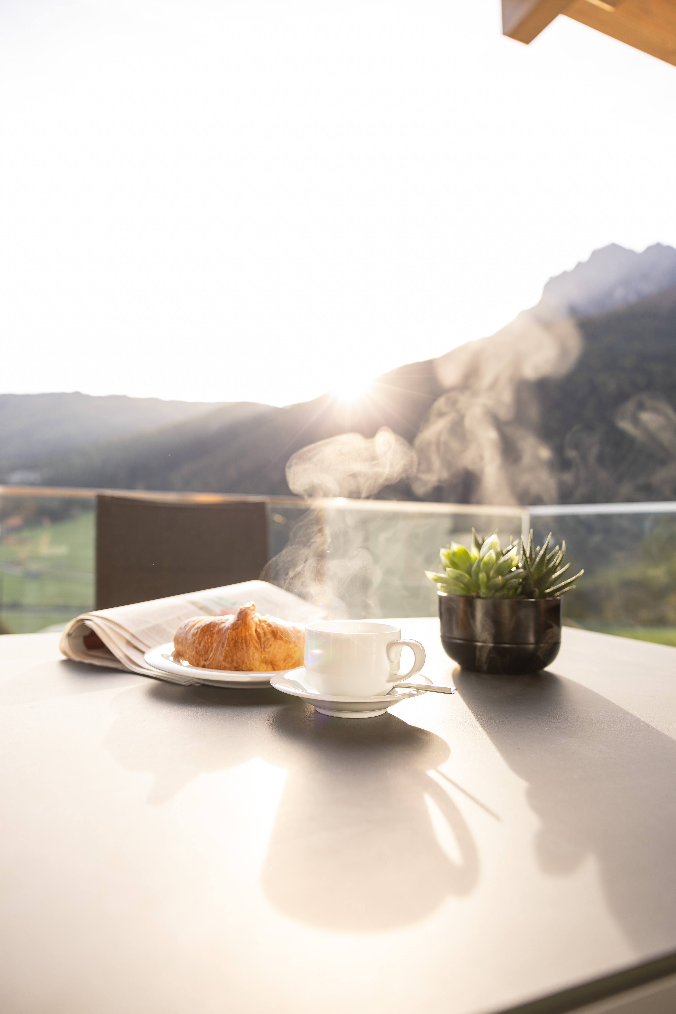 Am möblierten Balkon können Sie entspannen und die beeindruckende Stubaier Bergkulisse genießen.
