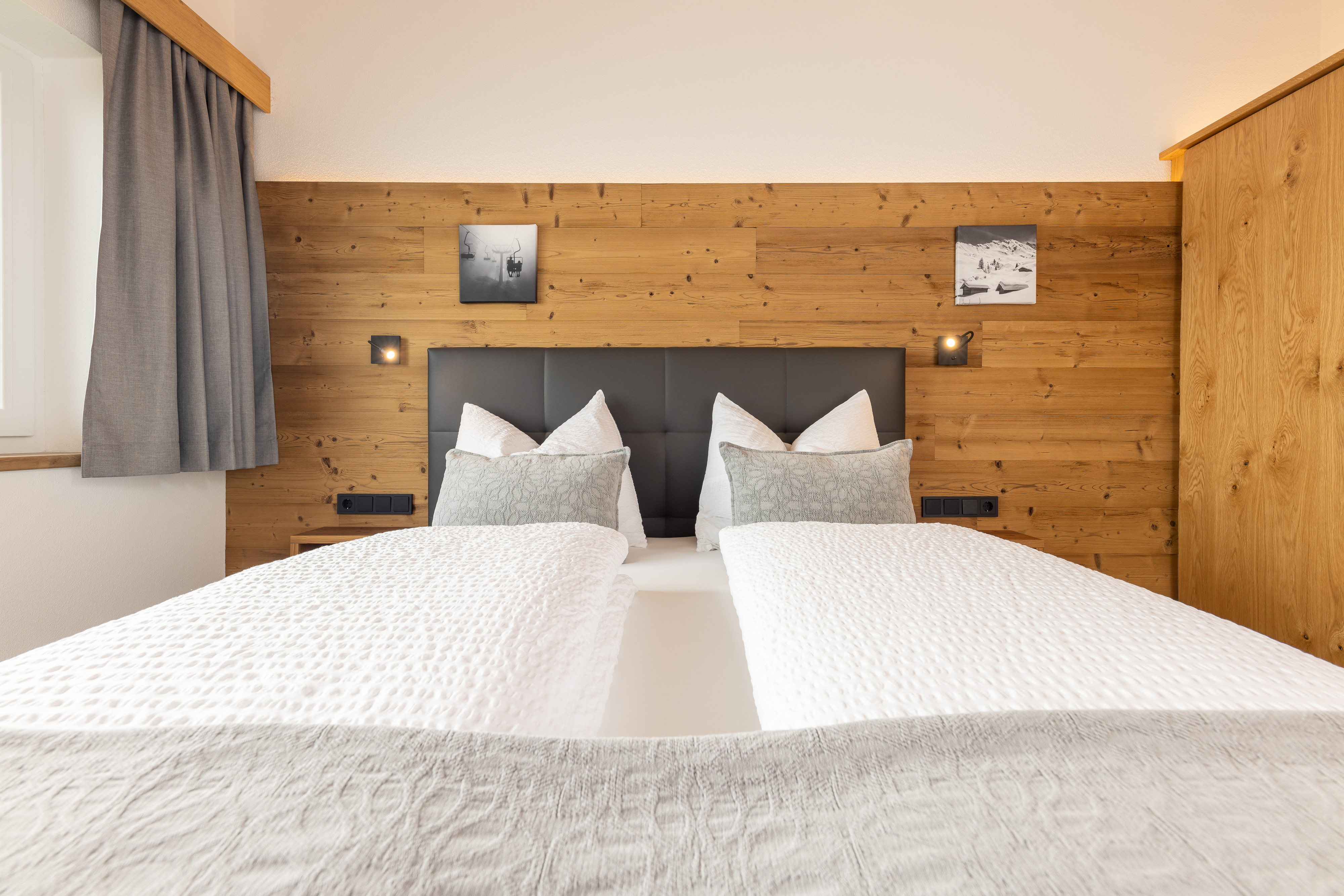 • Das Apartment Kreuzjoch mit einer Wohnfläche von 60m² und 1 Schlafzimmer für bis zu 3 Personen, befindet sich im Erdgeschoß (Gartenwohnung)