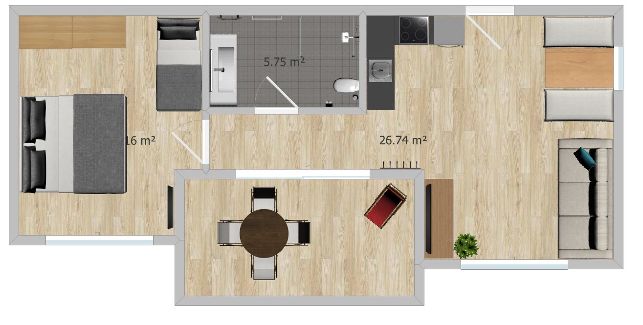 Das Apartment Serles mit einer Wohnfläche von 50m² und 1 Schlafzimmer für bis zu 3 Personen, befindet sich im Obergeschoß