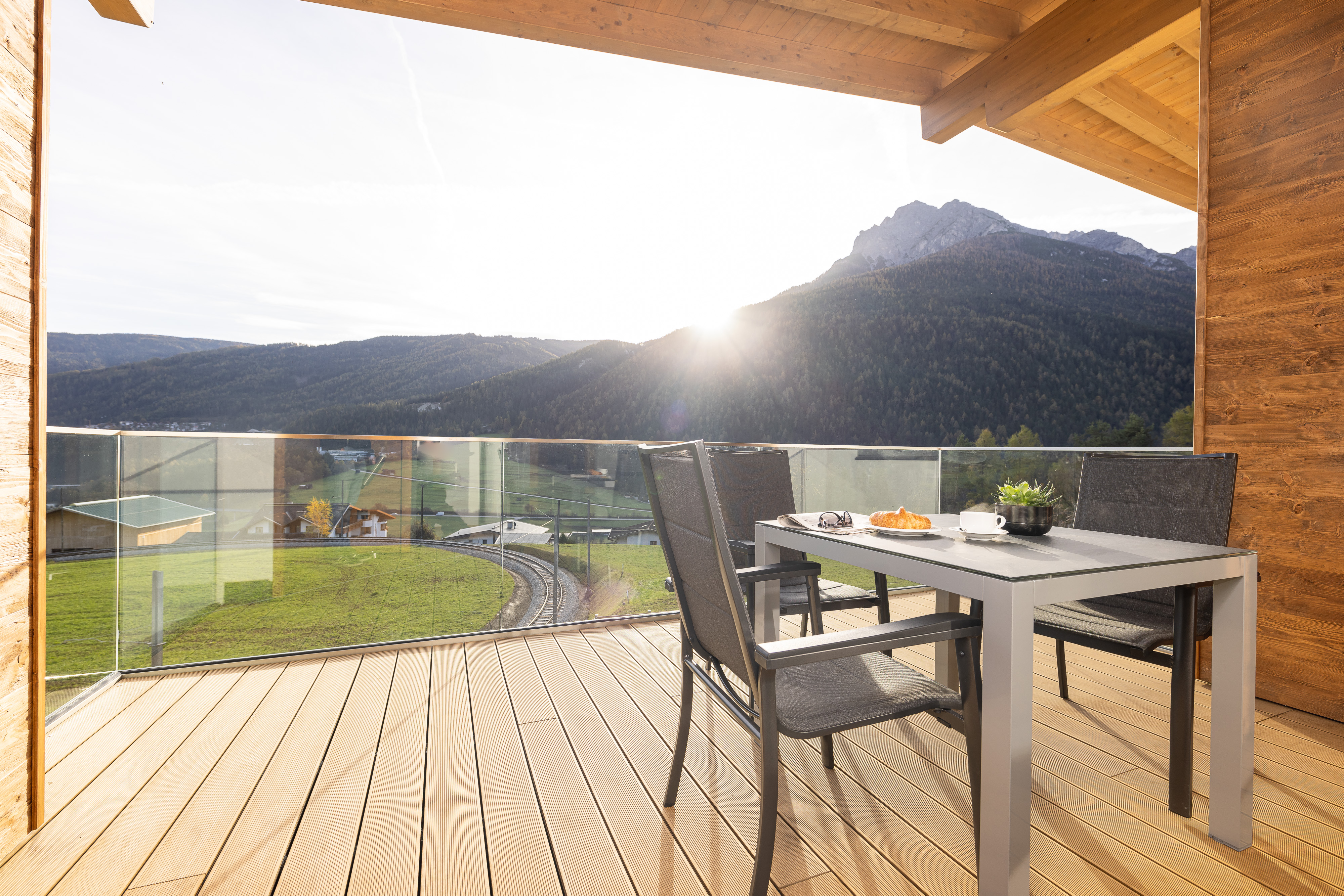 Am möblierten Balkon können Sie entspannen und die beeindruckende Stubaier Bergkulisse genießen.