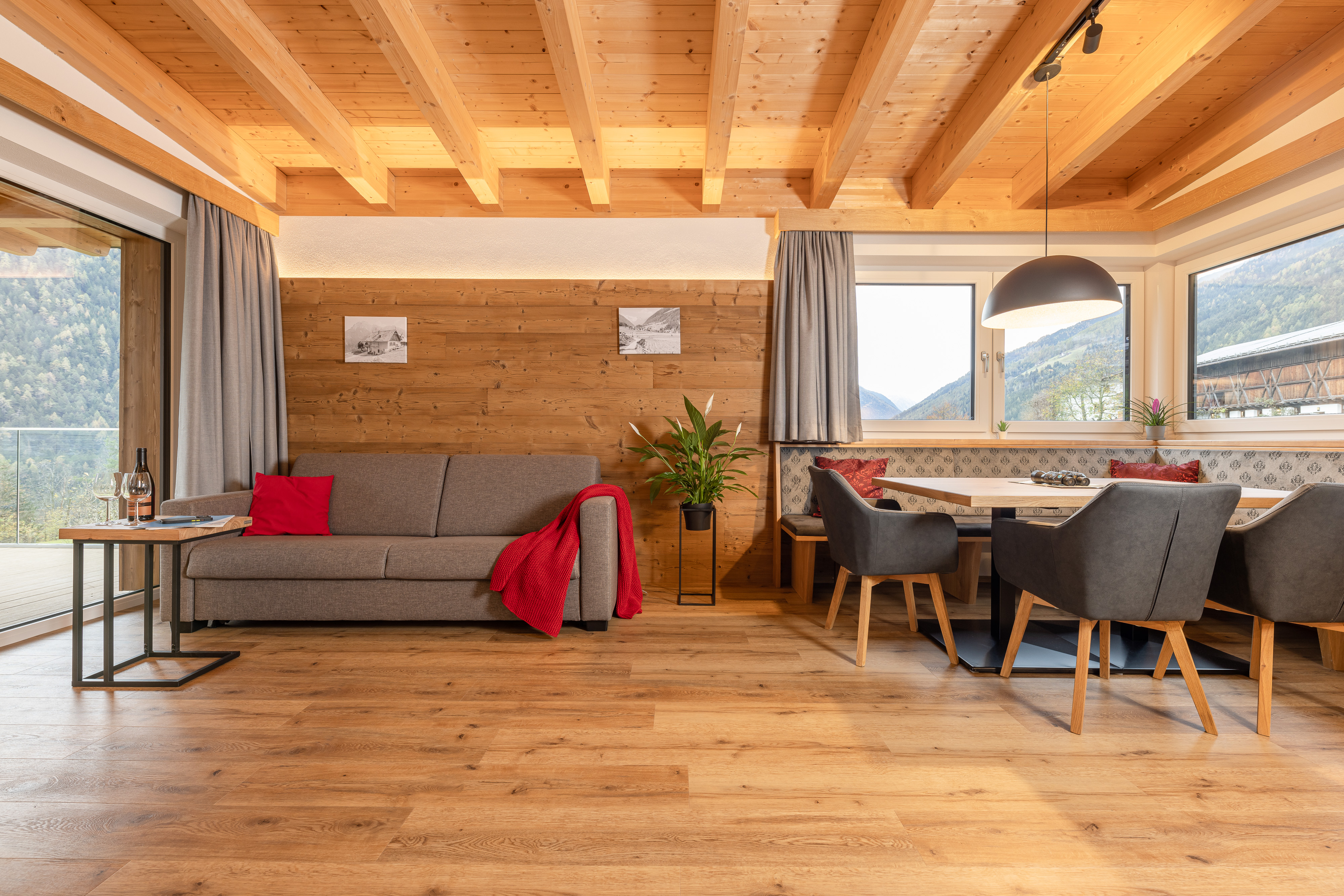 Durch die warme heimelige Atmosphäre werden Sie sich auf Anhieb wohlfühlen. In dem Apartment trifft sich Tiroler uriges Flair mit alpinem Lebensgefühl.